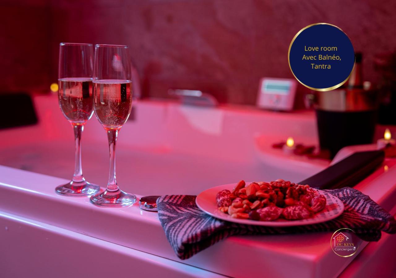 Appartement 1 Chambre avec Baignoire Spa. Guests will have a special experience as this apartment provides a fireplace. Featuring a private entrance, this apartment is comprised of 1 living room, 1 separate bedroom and 1 bathroom with a bath and a shower. In the fully equipped kitchen, guests will find a stovetop, a refrigerator, kitchenware and a microwave. The apartment offers a tea and coffee maker, a sofa, parquet floors, a flat-screen TV, as well as city views. The unit offers 1 bed.
