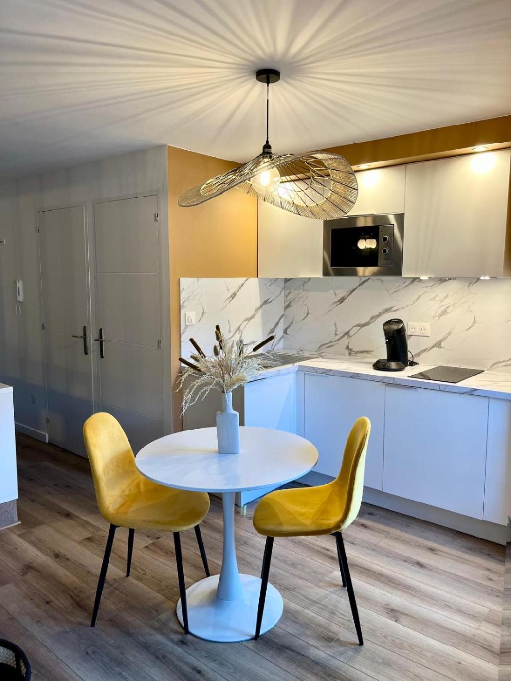 Cet appartement se compose de 1 chambre, dun salon, dune cuisine entièrement équipée avec un réfrigérateur et une machine à café, ainsi que de 1 salle de bains avec une douche et un sèche-cheveux.