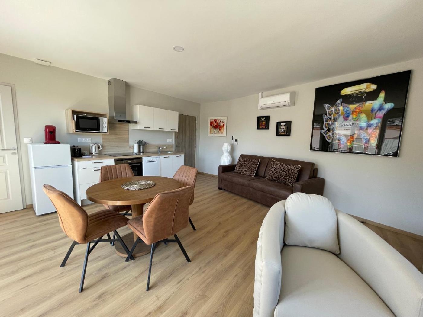 Appartement 1 Chambre. This apartment comes with 1 living room, 1 separate bedroom and 1 bathroom with a shower and free toiletries. In the well-fitted kitchen, guests will find a stovetop, a refrigerator, a dishwasher and kitchenware. This apartment is air-conditioned and has a seating area with a flat-screen TV, a washing machine, a minibar, a tea and coffee maker, as well as a dining area. The unit has 2 beds.