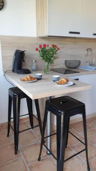 Appartement 1 Chambre. The well-fitted kitchen features a stovetop, a refrigerator, kitchenware and a microwave. The air-conditioned apartment provides a flat-screen TV, a private entrance, a tea and coffee maker, a wardrobe as well as garden views. The unit offers 1 bed.