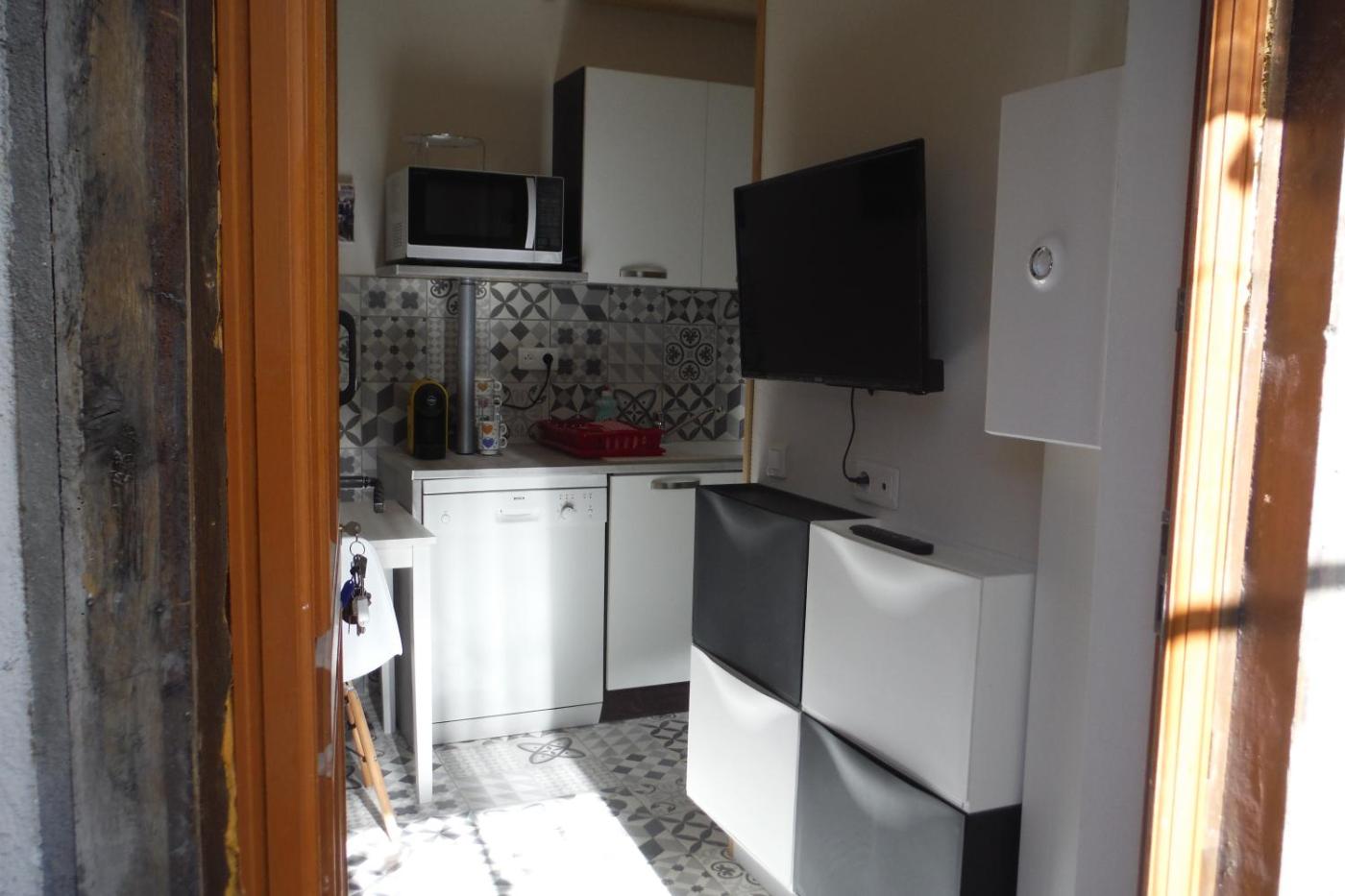 Appartement - Rez-de-Chaussée. This apartment comprises 1 living room, 1 separate bedroom and 1 bathroom with a shower and free toiletries. In the kitchen, guests will find a stovetop, a refrigerator, a dishwasher and kitchenware. Featuring a terrace with ancourtyard view, this apartment also provides air conditioning and a flat-screen TV. The unit offers 3 beds.