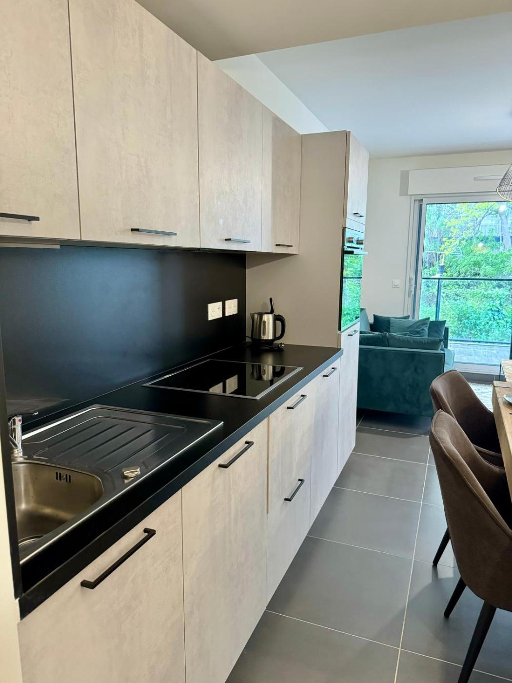 Cet appartement compte 1 chambre, une cuisine avec un réfrigérateur et un lave-vaisselle, une télévision à écran plat, un coin salon, ainsi que 1 salle de bains possédant une douche.