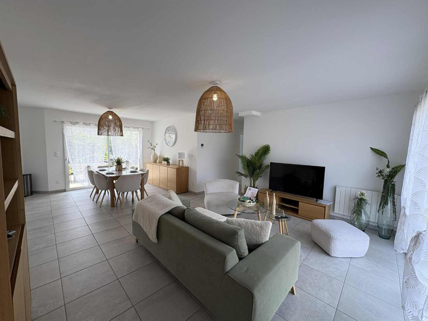 Maison 3 Chambres. Guests will find a stovetop, a refrigerator, a dishwasher and an oven in the well-equipped kitchen. The holiday home also provides guests with a barbecue. The holiday home provides a washing machine, a coffee machine, a terrace with garden views as well as a shared bathroom featuring a walk-in shower. The unit offers 4 beds.