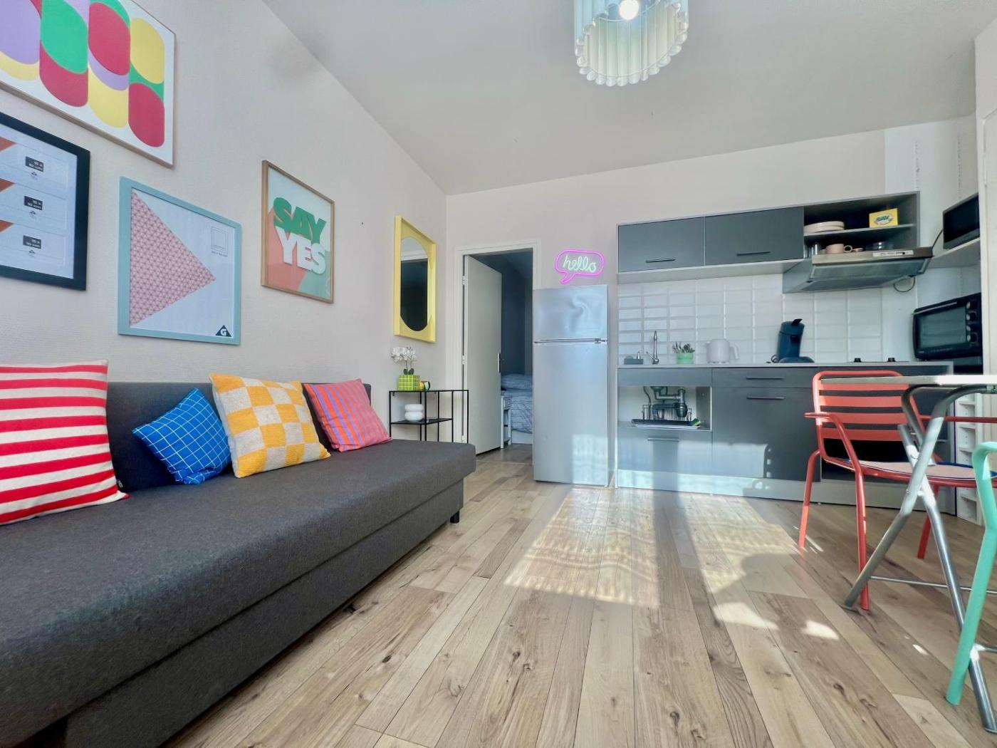 Appartement 1 Chambre. Featuring a private entrance, this apartment consists of 1 living room, 1 separate bedroom and 1 bathroom with a shower and a hairdryer. Guests can make meals in the kitchen that is equipped with a stovetop, a refrigerator, kitchenware and an oven. Boasting a terrace with garden views, this apartment also provides a washing machine and a flat-screen TV. The unit offers 2 beds.