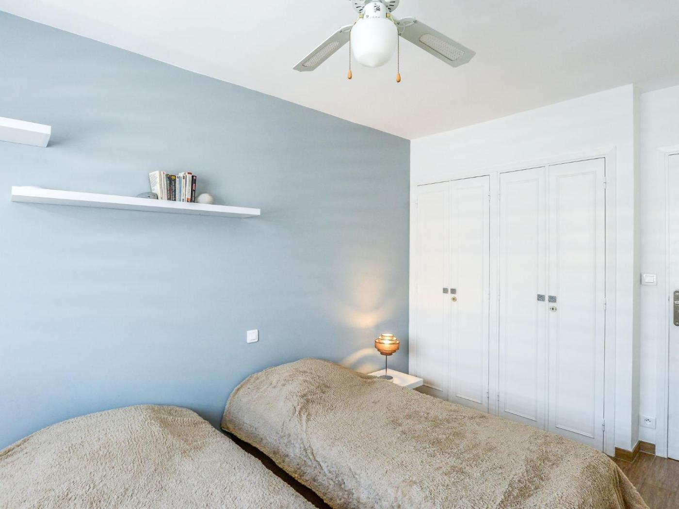 Appartement. This spacious apartment comes with 1 living room, 2 separate bedrooms and 1 bathroom with a shower and a hairdryer. The fully equipped kitchen has a stovetop, a refrigerator, a dishwasher and kitchenware. The air-conditioned apartment features a TV, a washing machine, a coffee machine, a dining area as well as sea views. The unit has 4 beds.
