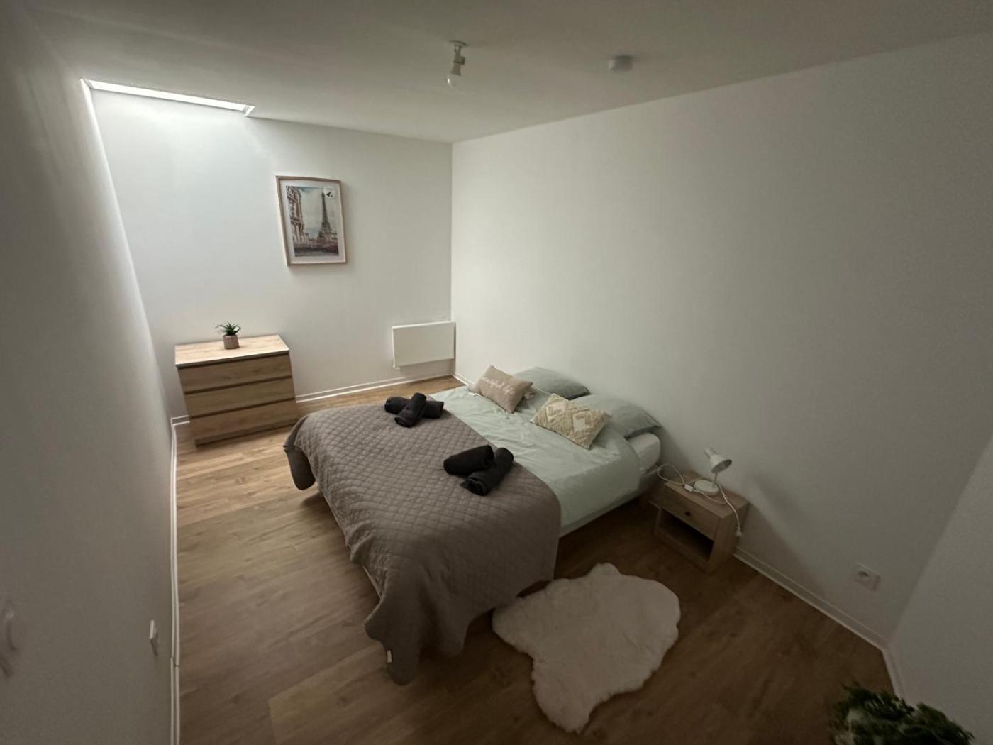 Appartement 2 Chambres. Boasting a private entrance, this air-conditioned apartment comes with 1 living room, 2 separate bedrooms and 1 bathroom with a shower and a hairdryer. In the kitchen, guests will find a stovetop, a refrigerator, kitchenware and a microwave. This apartment has soundproof walls, a tea and coffee maker, flat-screen TV with satellite channels, as well as chocolate for guests. The unit has 3 beds.