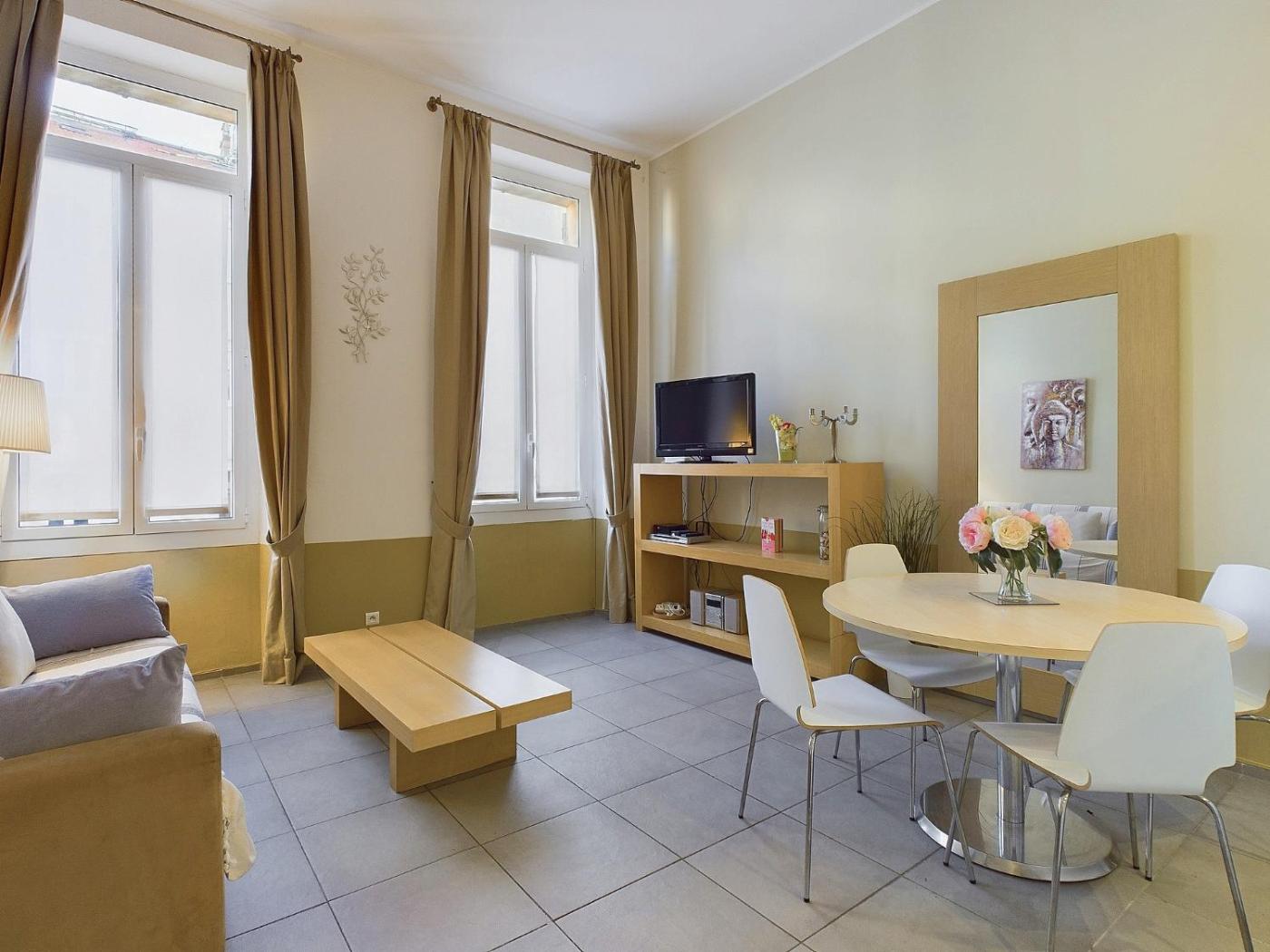 Appartement 1 Chambre. The apartments kitchen is available for cooking and storing food. This apartment is air-conditioned and has a flat-screen TV, a washing machine and heating. The unit has 2 beds.