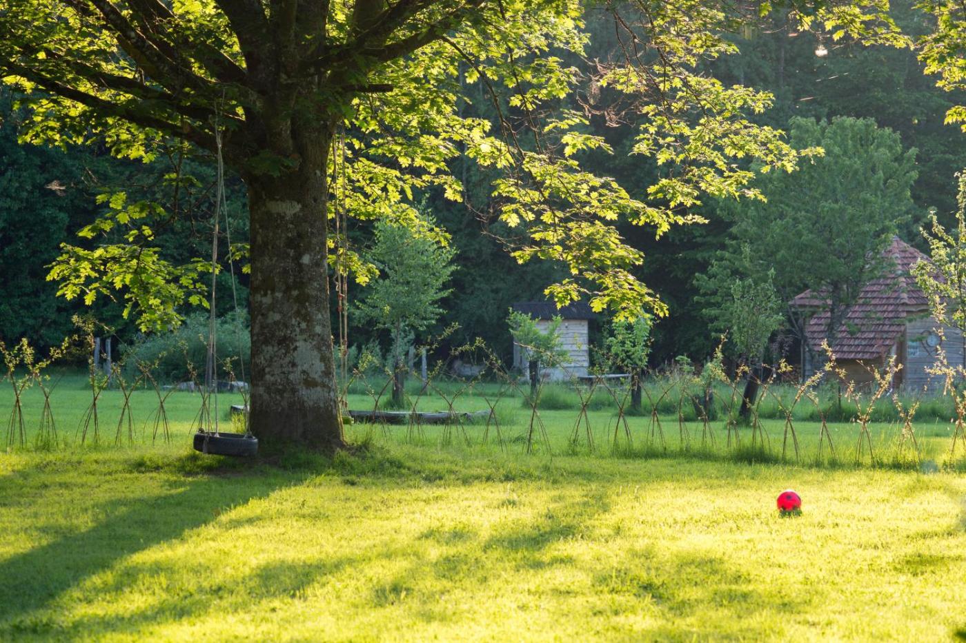 Bungalow Deluxe - Vue sur Jardin. Guests will have a special experience as the bungalow offers a fireplace. Guests will find a refrigerator, kitchenware, a microwave and a tea and coffee maker in the well-equipped kitchen. The bungalow also offers a barbecue. The bungalow provides a private entrance, soundproof walls, a terrace with garden views as well as a shared bathroom featuring a bath or a shower. The unit offers 2 beds. ;