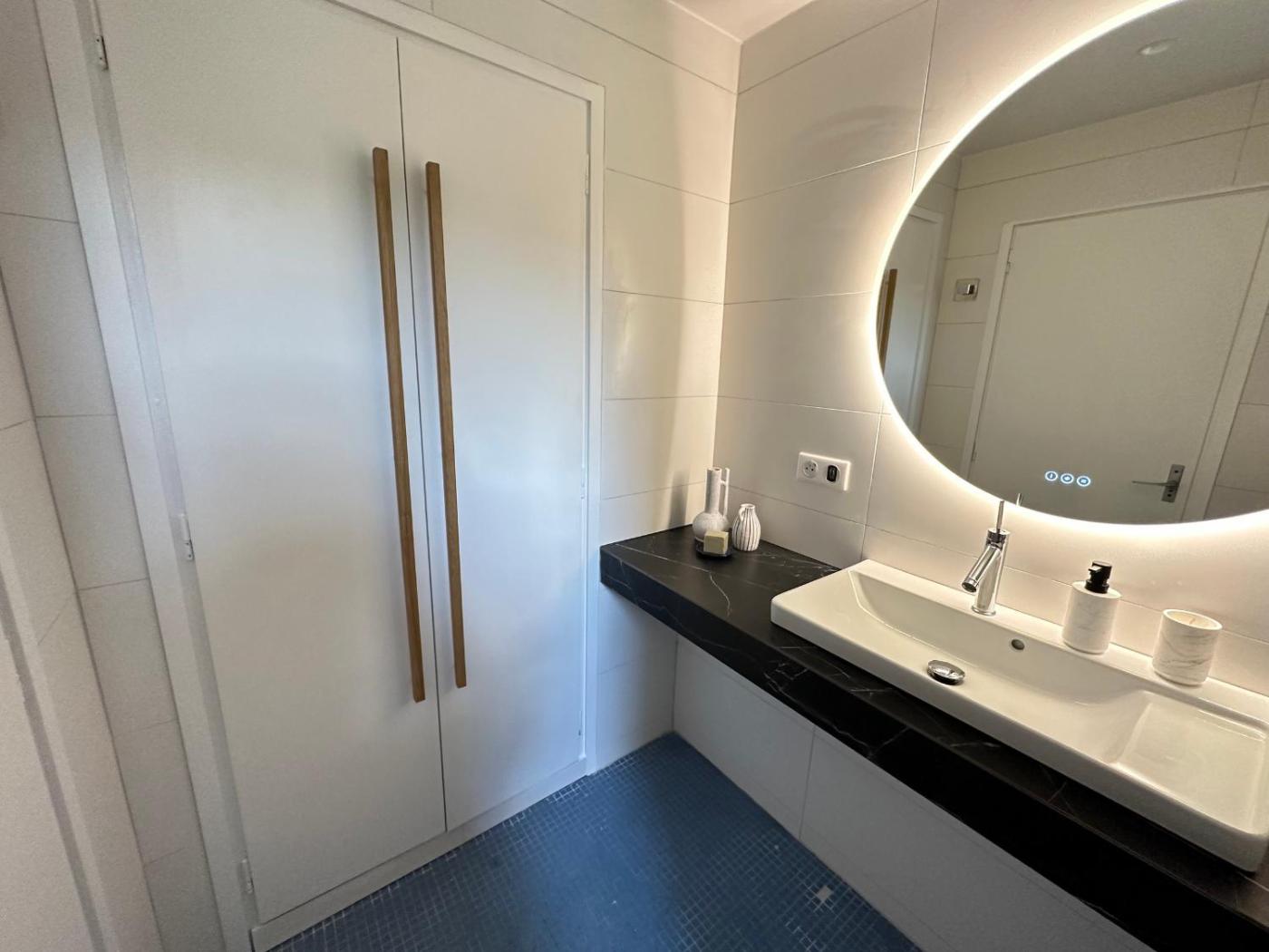 Appartement. Featuring a private entrance, this air-conditioned apartment comprises 1 living room, 1 separate bedroom and 1 bathroom with a shower and a hairdryer. The well-equipped kitchen features a stovetop, a refrigerator, a dishwasher and kitchenware. The apartment provides a washing machine, a coffee machine, a dining area, a TV, as well as sea views. The unit offers 3 beds.