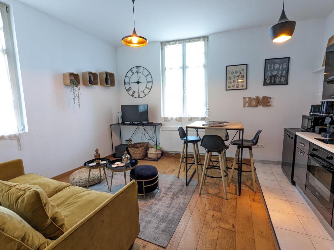Appartement 1 Chambre. This apartment comprises 1 living room, 1 separate bedroom and 1 bathroom with a shower and a hairdryer. Guests can make meals in the kitchen that comes with a stovetop, a refrigerator, a dishwasher and kitchenware. The apartment features parquet floors, a seating area with a flat-screen TV with satellite channels, a tea and coffee maker, a dining area, as well as a sofa. The unit offers 2 beds.