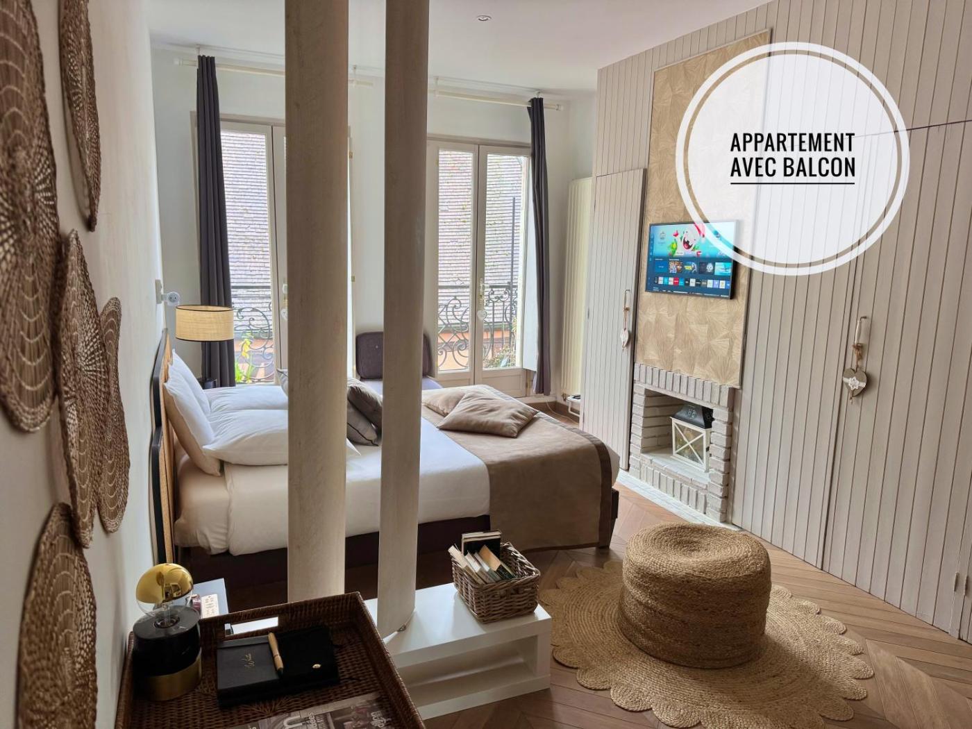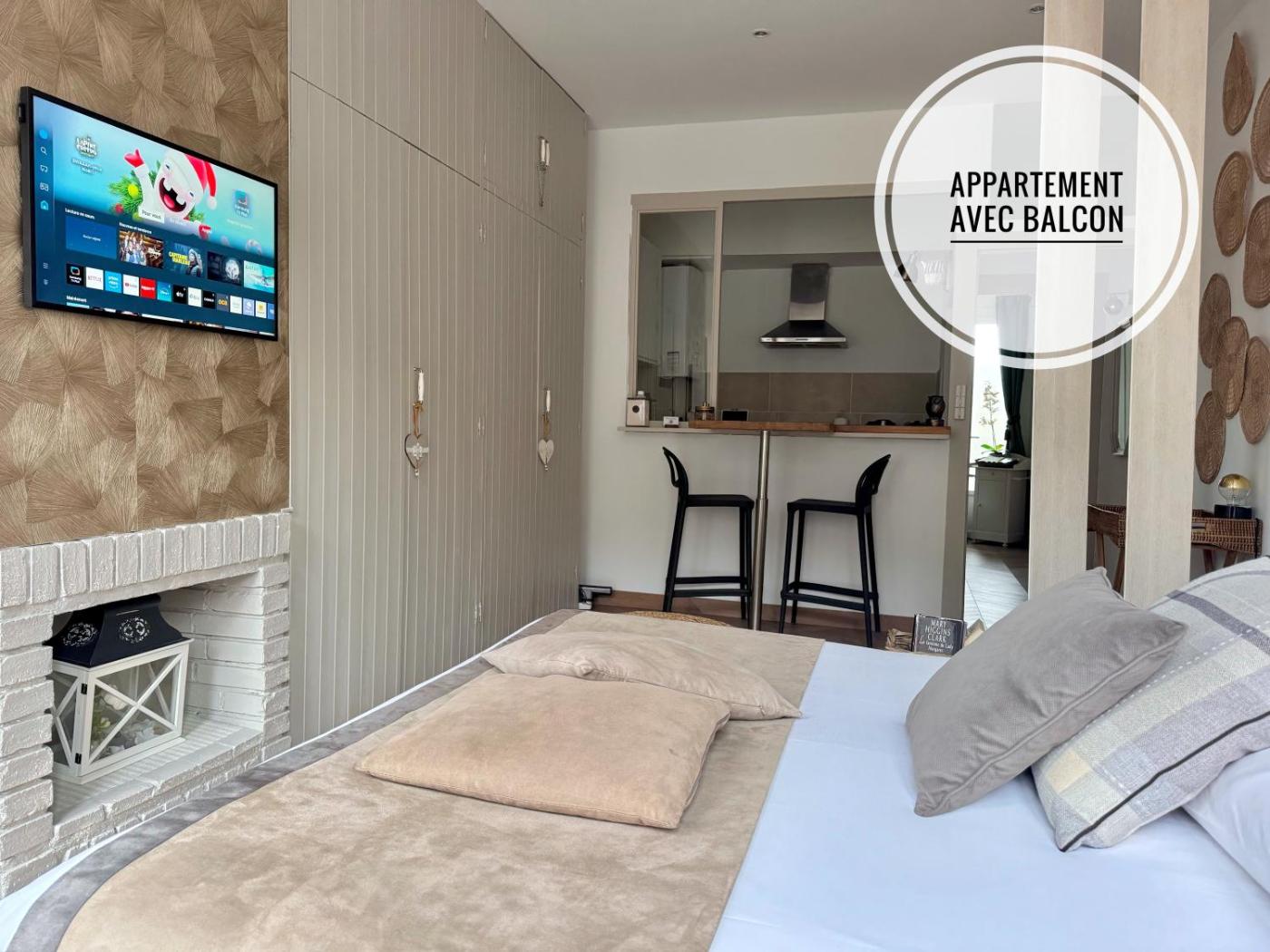 Appartement avec Balcon. This apartments special feature is the fireplace. Featuring a private entrance, this apartment also consists of 1 bedroom, a seating area and 1 bathroom with a bath and a hairdryer. The well-equipped kitchen features a stovetop, a refrigerator, kitchenware and an oven. The apartment provides a flat-screen TV with cable channels, a washing machine, soundproof walls, a tea and coffee maker as well as city views. The unit offers 1 bed. ;