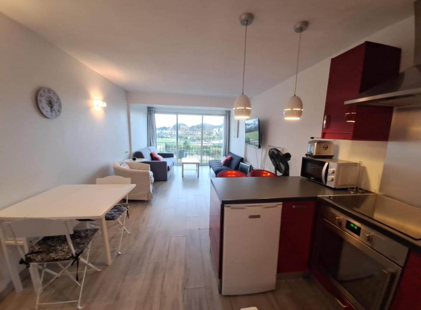 Appartement 1 Chambre. Featuring a private entrance, this apartment also is comprised of 1 living room, 1 separate bedroom and 1 bathroom with a walk-in shower. In the fully equipped kitchen, guests will find a stovetop, a refrigerator, a dishwasher and kitchenware. The apartment features parquet floors, a seating area with a flat-screen TV, a coffee machine, a dining area as well as sea views. The unit offers 2 beds.