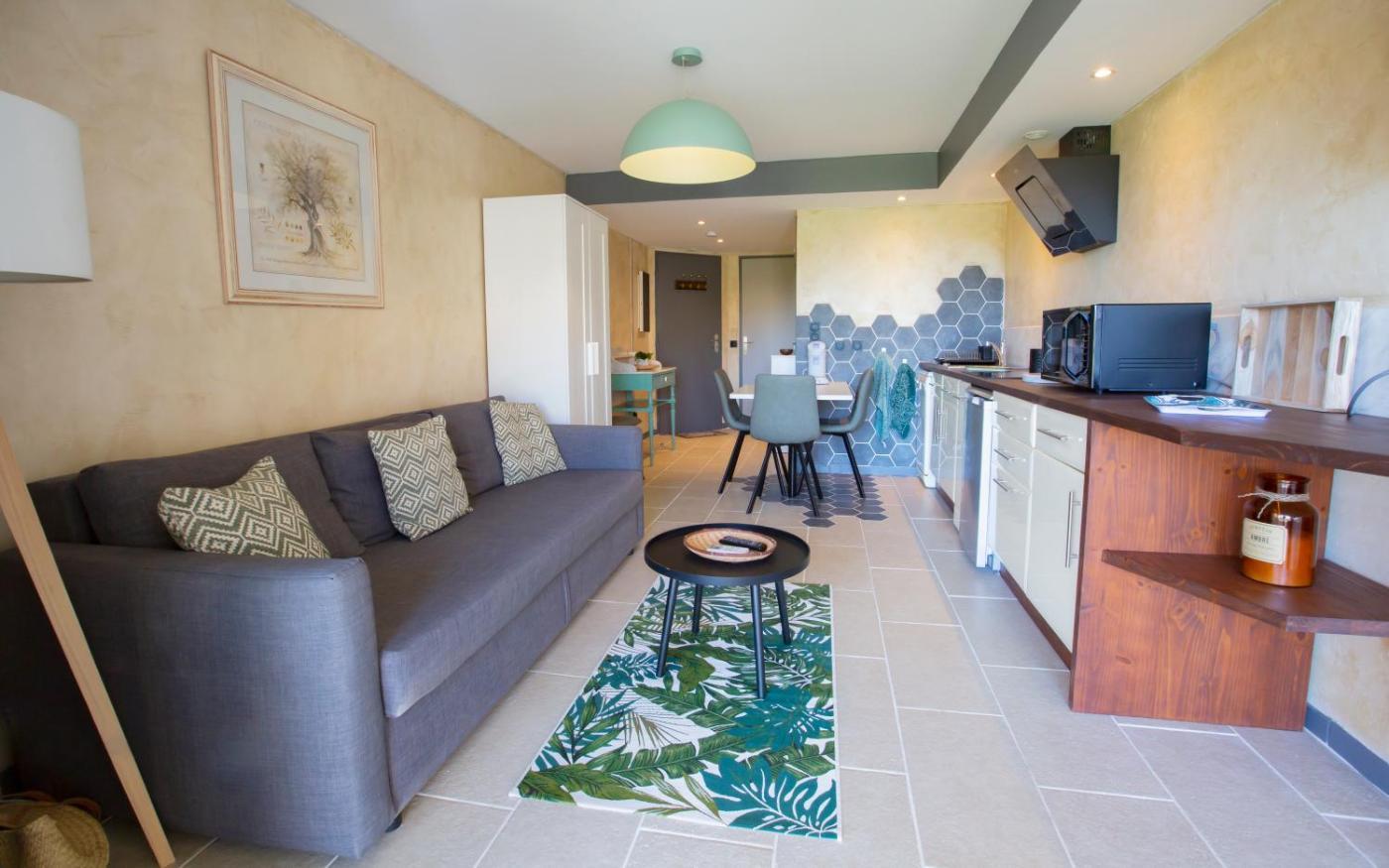Appartement 1 Chambre. The private pool is a top feature of this apartment. This apartment includes 1 living room, 1 separate bedroom and 1 bathroom with a shower and free toiletries. In the fully equipped kitchen, guests will find a stovetop, a refrigerator, a dishwasher and an oven. The air-conditioned apartment offers a flat-screen TV with streaming services, a washing machine, a coffee machine, a seating area as well as sea views. The unit has 2 beds.