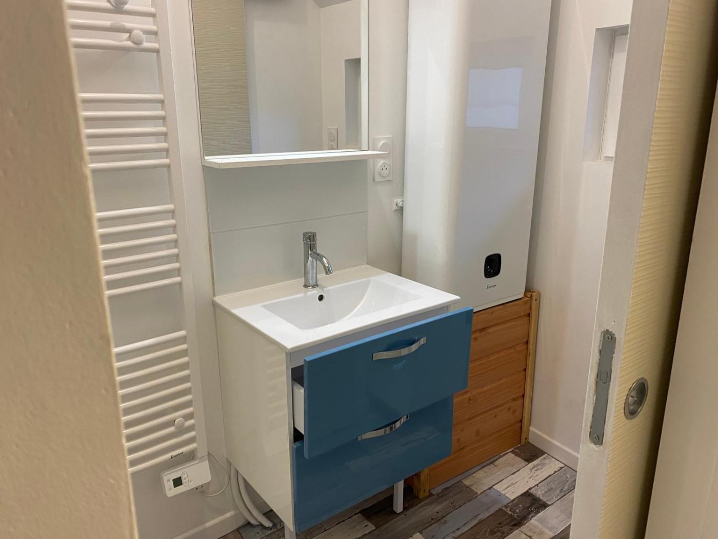Maison 1 Chambre. The holiday homes kitchen, which has a stovetop and a microwave, is available for cooking and storing food. This holiday home features heating, a flat-screen TV and garden views. The unit has 2 beds.