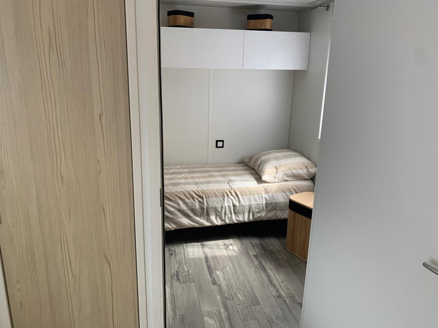 Mobile Home. This mobile home features a pool with a view. Boasting a private entrance, this air-conditioned mobile home features 1 living room, 2 separate bedrooms and 1 bathroom with a shower. Guests can make meals in the kitchenette that has a stovetop, a refrigerator, a dishwasher and kitchenware. The mobile home features soundproof walls, a coffee machine, a seating area, a flat-screen TV, as well as garden views. The unit has 3 beds. ;