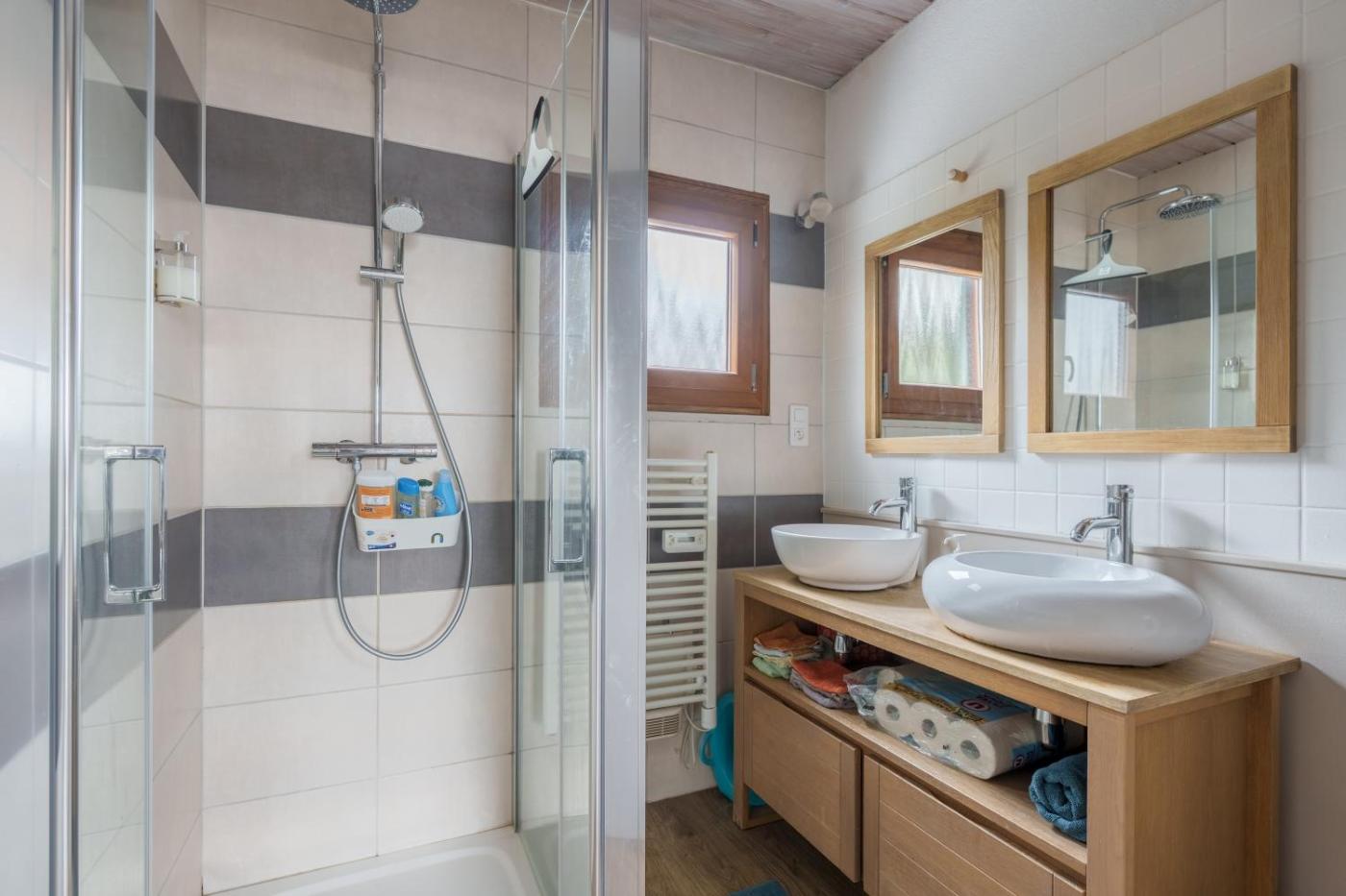 Chalet 3 Chambres. This spacious chalet consists of 1 living room, 3 separate bedrooms and 1 bathroom with a shower and free toiletries. Guests will find a refrigerator, a dishwasher, kitchenware and an oven in the kitchen. The chalet also offers a barbecue. Featuring a balcony with garden views, this chalet also provides a washing machine and a TV with cable channels. The unit offers 4 beds.