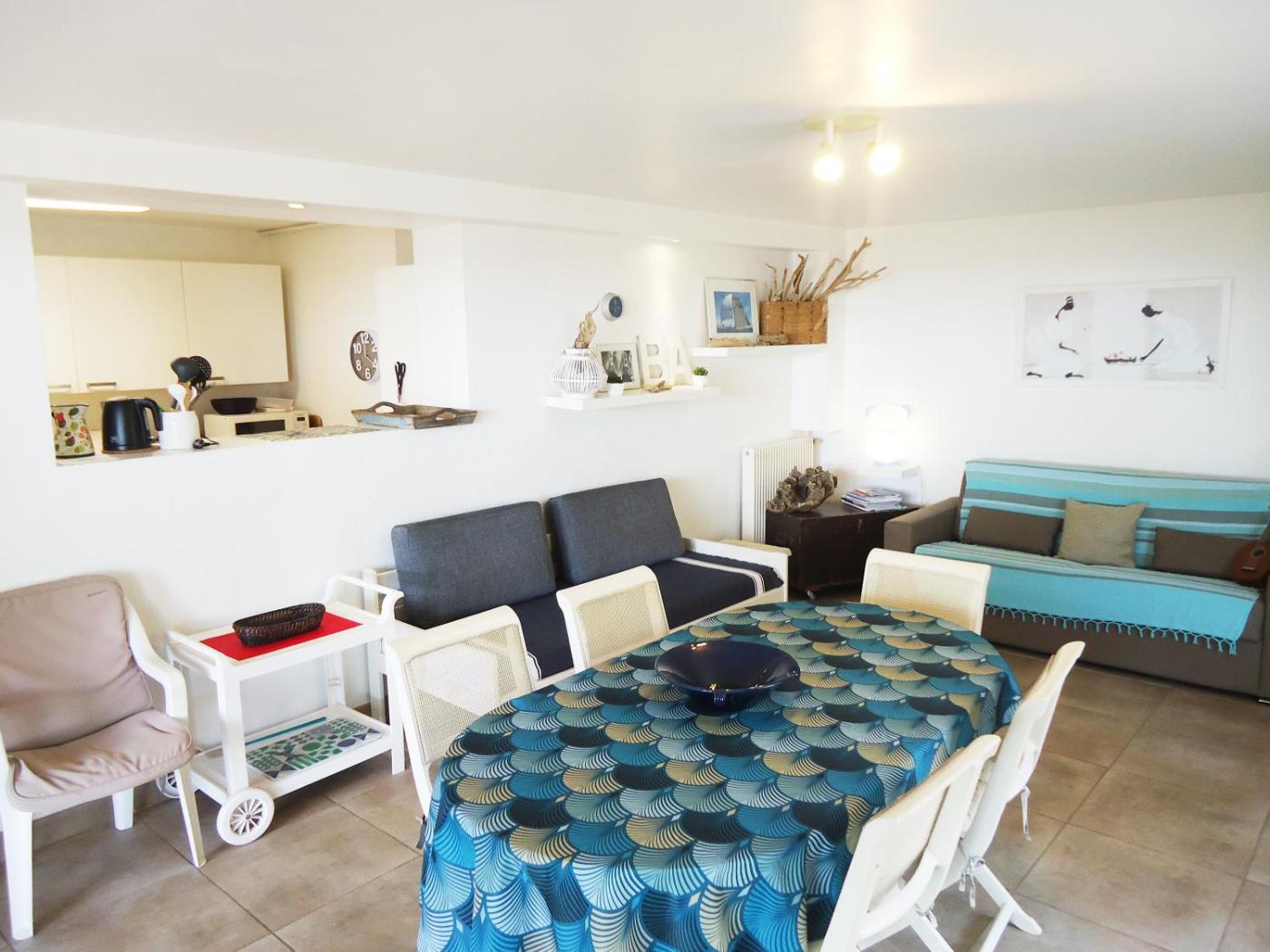 Appartement - Vue sur Mer. The apartment has 2 bedrooms, 1 bathroom and a kitchenette. In the well-fitted kitchenette, guests will find a refrigerator, a dishwasher, an oven and a microwave. This apartment features a TV. The unit has 4 beds.