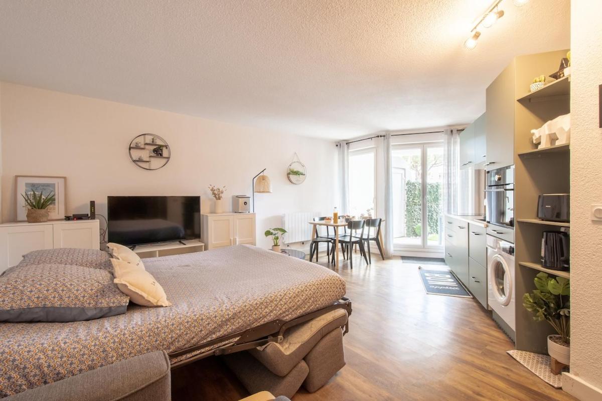 Appartement 2 Chambres avec Terrasse. Featuring a private entrance, this air-conditioned apartment consists of 1 living room, 2 separate bedrooms and 1 bathroom with a shower and a hairdryer. Guests can make meals in the kitchen that is equipped with a stovetop, a refrigerator, a dishwasher and kitchenware. The spacious apartment provides a washing machine, soundproof walls, a coffee machine as well as a terrace with garden views. The unit offers 4 beds.