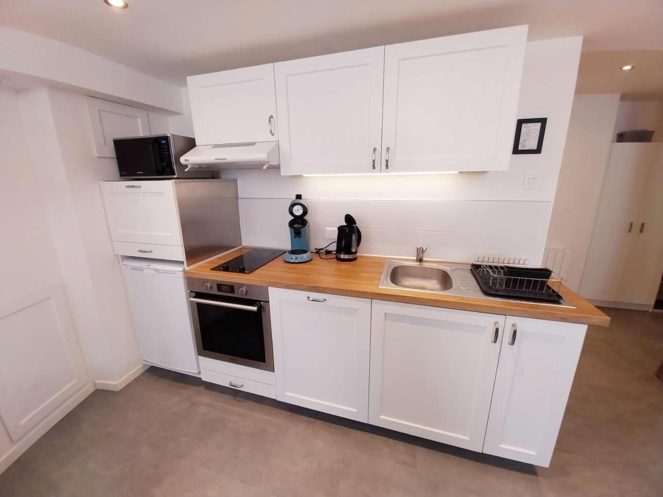 Chambre Double avec Salle de Bains Privative. The double room features a coffee machine, a dining area, as well as a private bathroom featuring a shower. The well-equipped kitchenette features a stovetop, a refrigerator, a dishwasher and kitchenware. The spacious double room provides a washing machine, a private entrance, soundproof walls, a flat-screen TV with cable channels, as well as a quiet street view. The unit offers 2 beds.