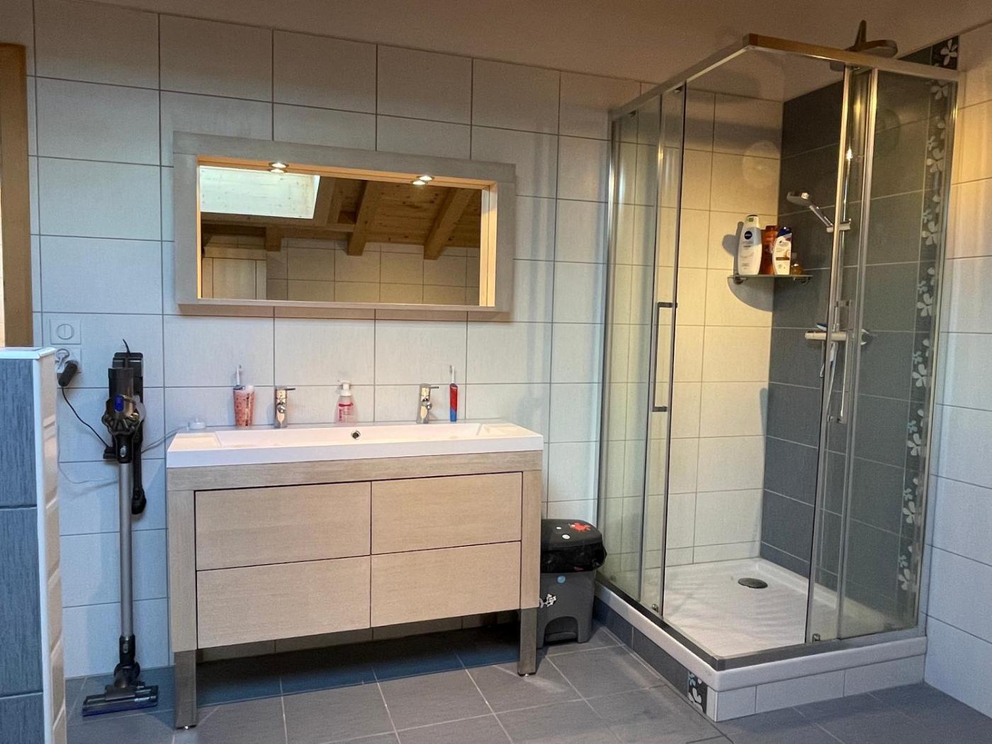 Chambre Double avec Salle de Bains Privative Extérieure. Offering free toiletries, this double room includes a private bathroom with a shower and a hairdryer. The double room offers a tea and coffee maker, a wardrobe, a high chair for children, heating, as well as a flat-screen TV with streaming services. The unit has 1 bed.