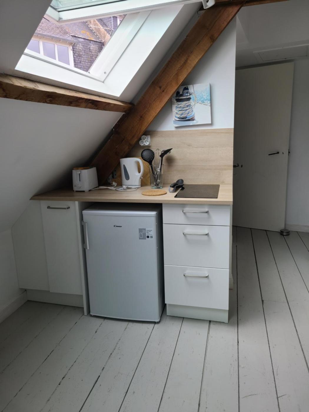 Appartement. Boasting 1 bedroom and 1 bathroom with a shower, this apartment has a well-fitted kitchenette and a terrace. Guests can make meals in the kitchenette that features a stovetop, a refrigerator, kitchenware and a microwave. Among the room amenities are a tea and coffee maker, a dining area and a wardrobe as well as city views. The unit offers 1 bed.