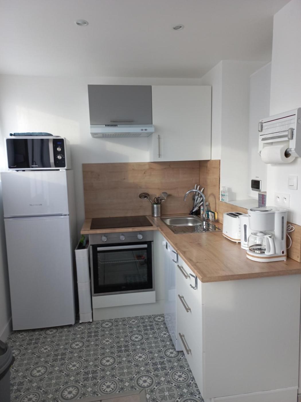 Appartement 1 Chambre. This apartment is comprised of 1 living room, 1 separate bedroom and 1 bathroom with a shower and a hairdryer. In the kitchen, guests will find a stovetop, a refrigerator, a dishwasher and kitchenware. The apartment offers a tea and coffee maker, a tiled floor, heating, a flat-screen TV, as well as sea views. The unit offers 2 beds.