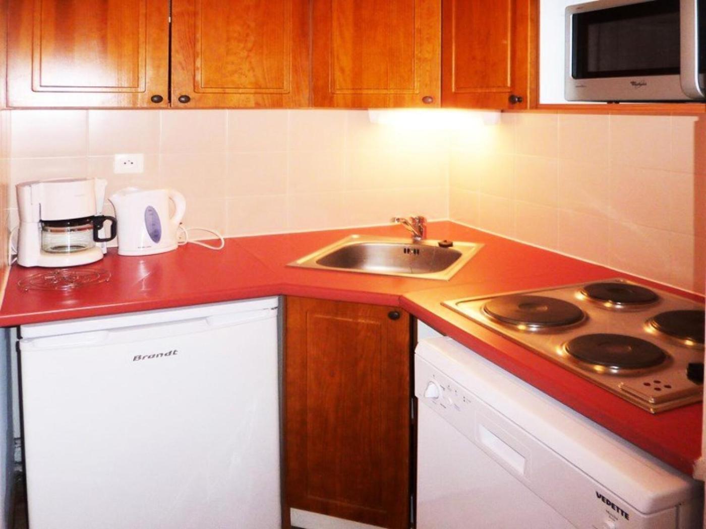 Appartement. The kitchen has a refrigerator, a dishwasher and a microwave. This apartment features a TV.