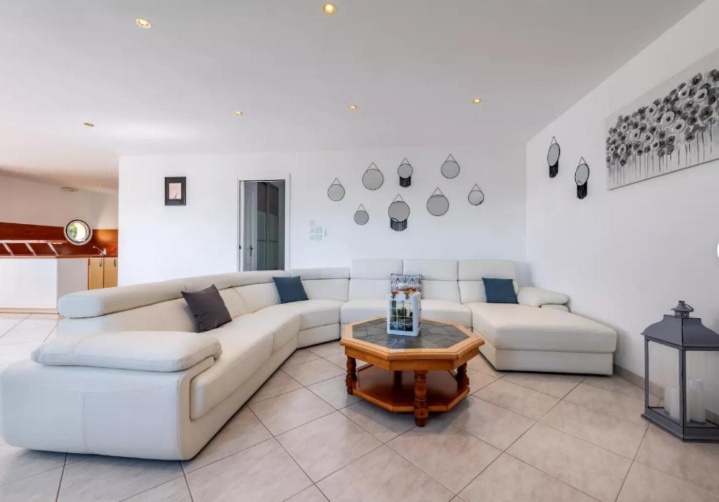 Appartement 3 Chambres. Featuring a private entrance, this air-conditioned apartment comprises 1 living room, 3 separate bedrooms and 1 bathroom with a shower and a hairdryer. Guests will find a stovetop, a refrigerator, a dishwasher and kitchenware in the kitchen. The apartment also provides guests with a barbecue. The spacious apartment provides a flat-screen TV with cable channels, a washing machine, a minibar, a tea and coffee maker as well as sea views. The unit offers 4 beds.
