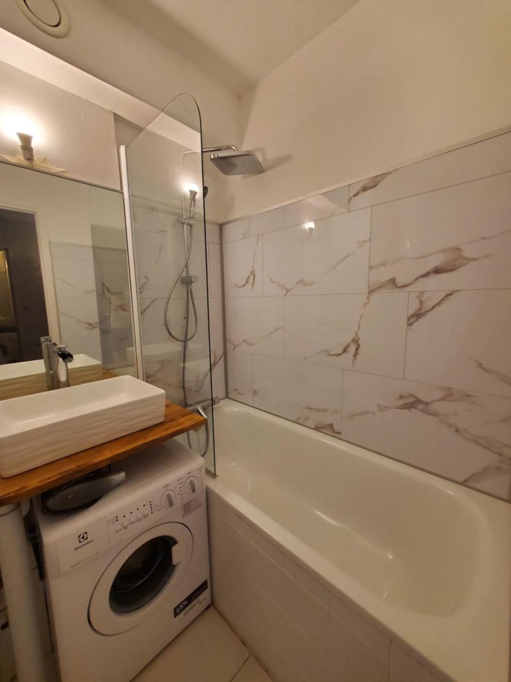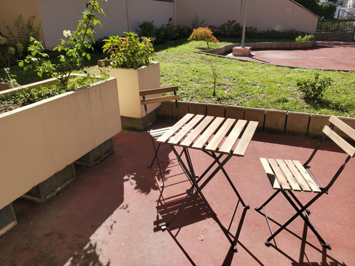 Studio avec Vue sur Jardin. The fully equipped kitchen features a stovetop, a refrigerator, kitchenware and a microwave. The studio provides a washing machine, a private entrance, a terrace with garden views as well as a private bathroom featuring a bath. The unit offers 1 bed.
