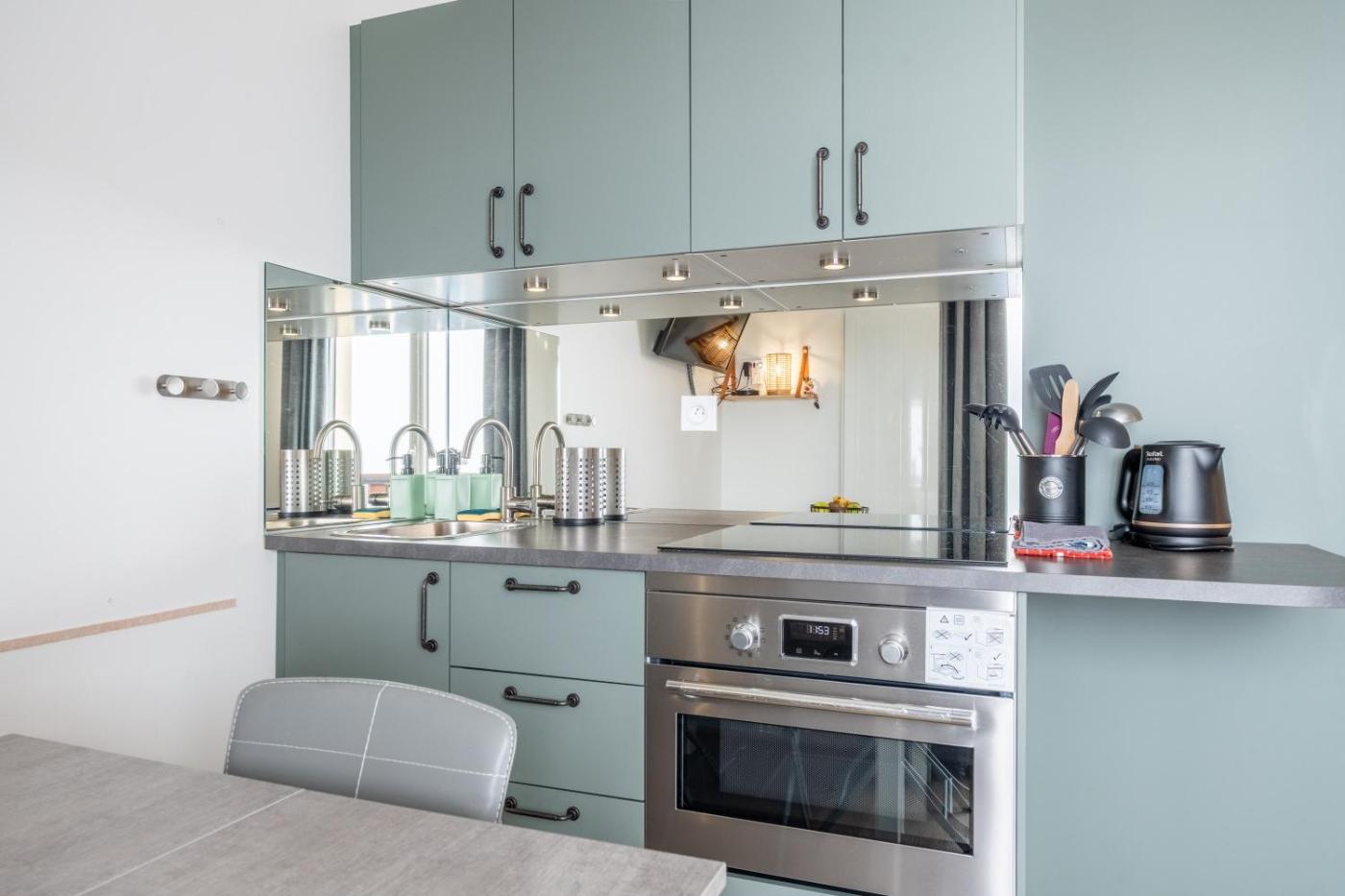 Cet appartement comprend un balcon, 1 chambre, un salon et une cuisine bien équipée. Une télévision à écran plat est disponible.