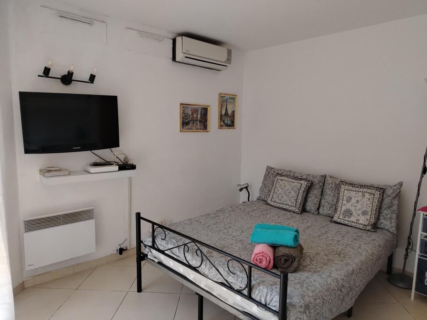 Appartement 1 Chambre. The air-conditioned apartment has 1 bedroom and 1 bathroom with a shower and a bidet. The apartments kitchen is available for cooking and storing food. The apartment features a flat-screen TV with cable channels, a washing machine, a seating area, a tiled floor as well as garden views. The unit has 1 bed.