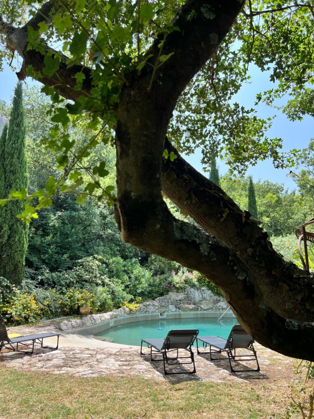 Chambre Lit Queen-Size - Vue sur Piscine. This double rooms standout feature is the fireplace. Guests can make meals in the fully equipped kitchen that features a refrigerator, kitchenware and a microwave. The spacious double room offers a washing machine, a tea and coffee maker, a terrace with garden views as well as a private bathroom featuring a walk-in shower. The unit offers 1 bed.