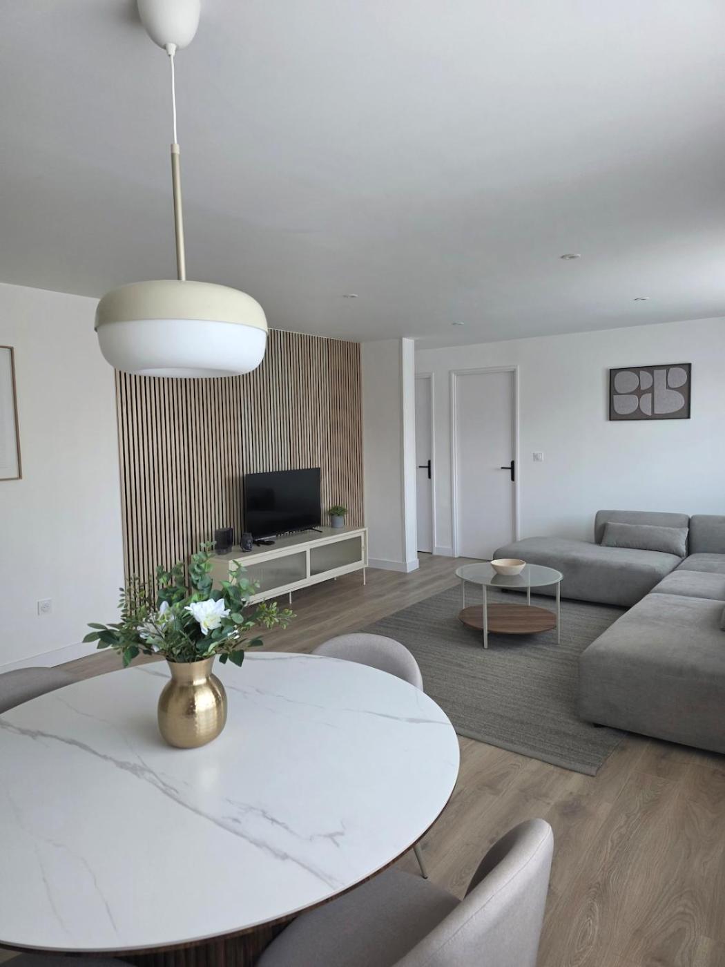 Appartement 2 Chambres. The apartments kitchen is available for cooking and storing food. The spacious apartment provides a washing machine, a wardrobe, a sofa, heating and a flat-screen TV. The unit offers 2 beds.