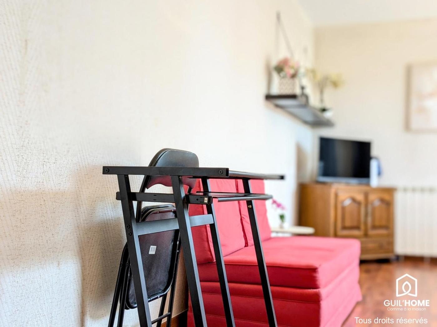 Studio avec Balcon. This apartment consists of 1 living room, 1 separate bedroom and 1 bathroom with a bath and a hairdryer. Guests can make meals in the kitchen that is equipped with a stovetop, a refrigerator, kitchenware and an oven. Featuring a balcony with garden views, this apartment also provides a washing machine and a flat-screen TV with cable channels. The unit offers 1 bed.