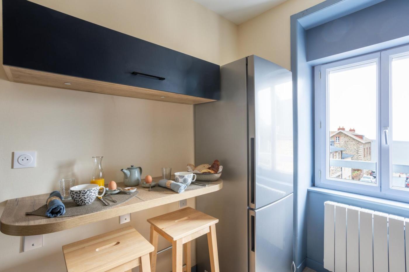 Cet appartement se compose de 2 chambres, dun salon, dune cuisine entièrement équipée avec un réfrigérateur et une machine à café, ainsi que de 1 salle de bains avec une douche et un sèche-cheveux. Une télévision est à votre disposition.