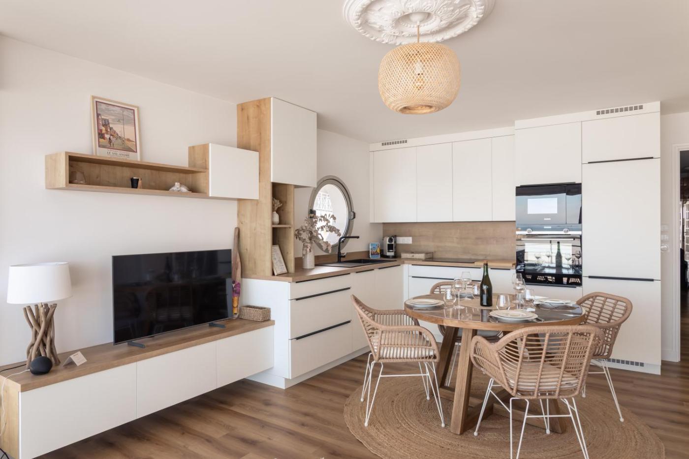 Appartement 1 Chambre. This apartment includes 1 living room, 1 separate bedroom and 1 bathroom with a shower and free toiletries. In the fully equipped kitchen, guests will find a refrigerator, a dishwasher, kitchenware and an oven. Boasting a balcony with sea views, this apartment also offers a washing machine and a TV with cable channels. The unit has 1 bed.