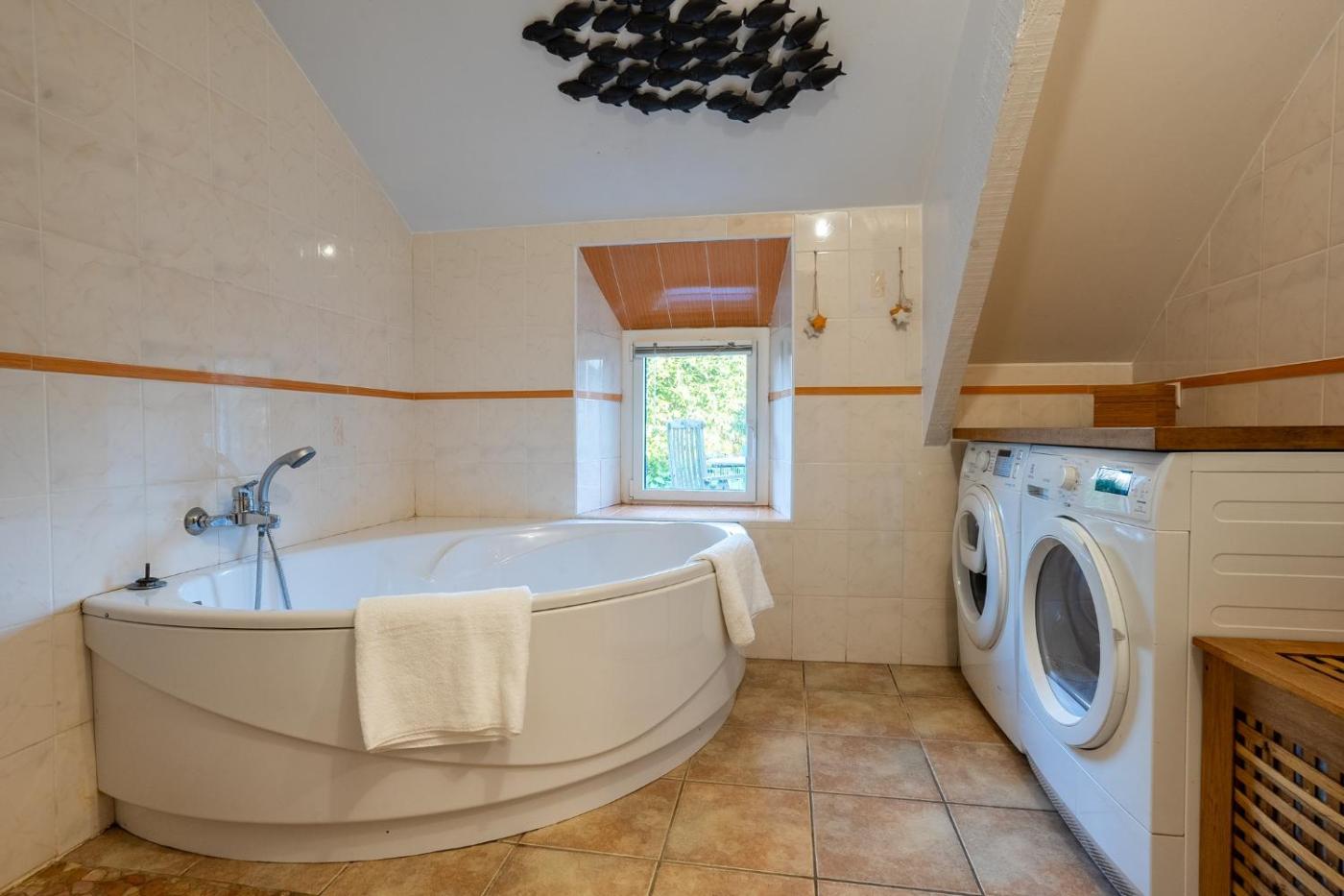 Disposant d’une terrasse et offrant une vue sur le jardin, cette maison de vacances comprend 2 chambres, un salon, une télévision par câble, une cuisine équipée, ainsi que 2 salles de bains avec une douche et une baignoire.