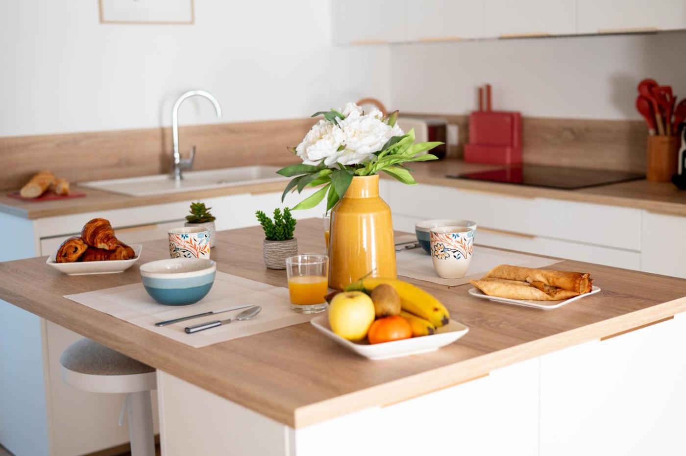 Appartement 1 Chambre Deluxe. Guests will have a special experience as the apartment provides a hot tub. This spacious apartment consists of 1 living room, 1 separate bedroom and 1 bathroom with a bath and a shower. Guests can make meals in the kitchen that is equipped with a stovetop, a refrigerator, a dishwasher and kitchenware. This apartment features a washing machine, flat-screen TV with streaming services, city views, as well as winechampagne for guests. The unit offers 1 bed.