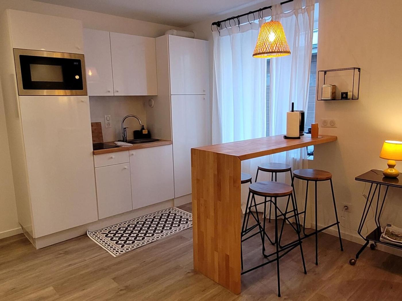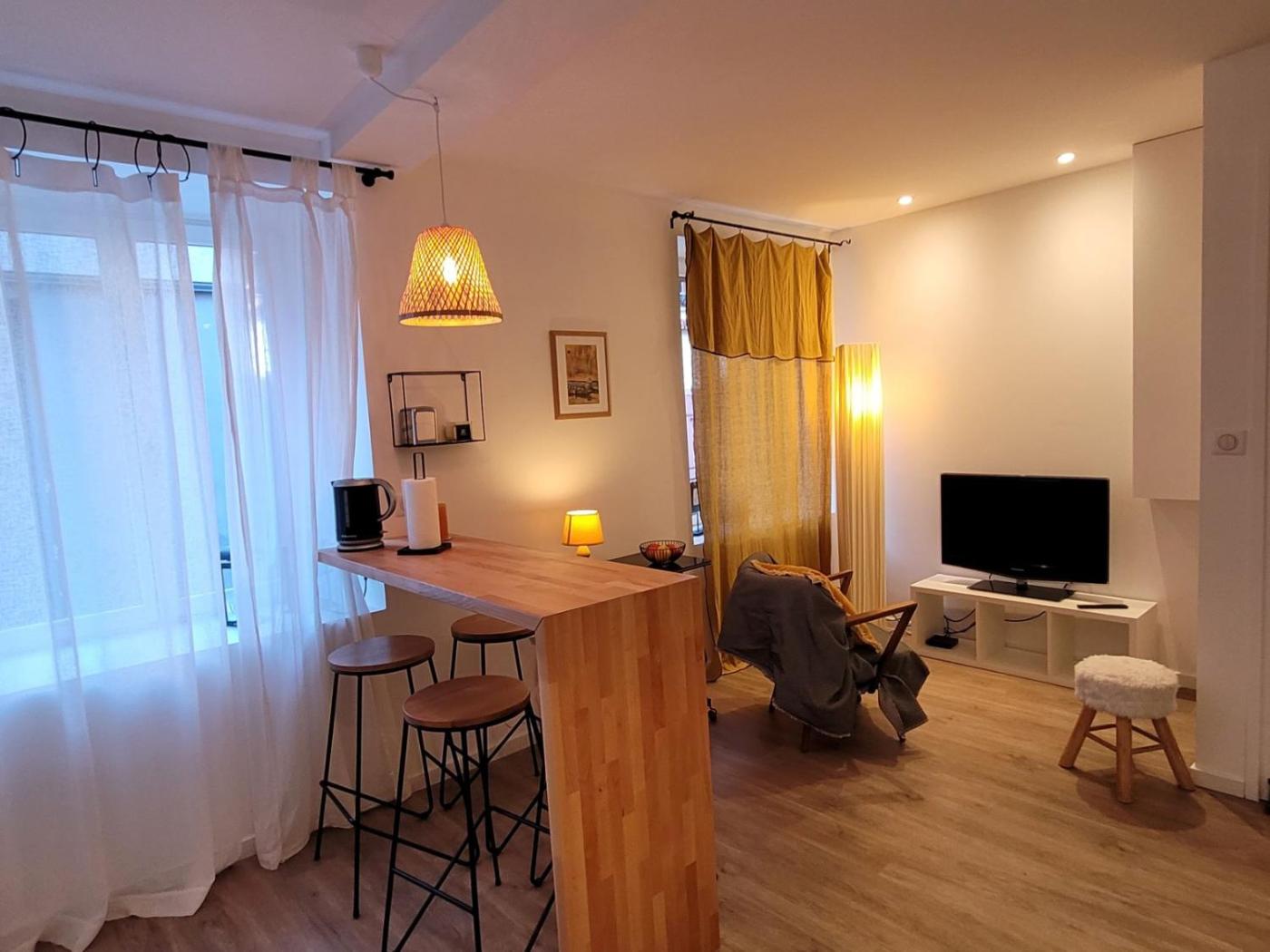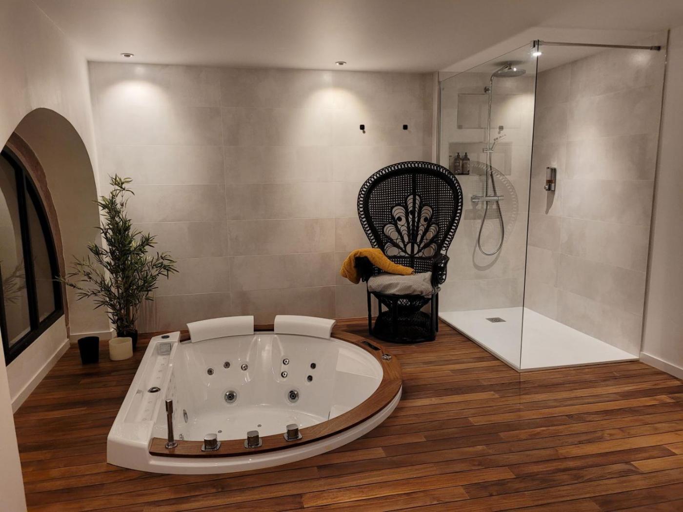 Appartement 1 Chambre. The hot tub and spa bath are the standout features of this apartment. Meals can be prepared in the kitchen, which has a stovetop, a refrigerator, kitchenware and an oven. The apartment has parquet floors, a seating area with a flat-screen TV with cable channels, a washing machine, a coffee machine, as well as a dining area. The unit has 1 bed.