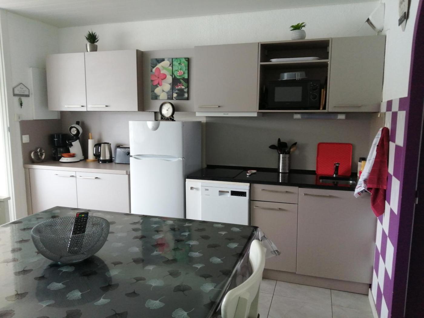 Appartement - Vue sur Lac. Featuring a private entrance, this apartment comprises 1 living room, 2 separate bedrooms and 1 bathroom with a bath or a shower and a hairdryer. The well-fitted kitchen features a stovetop, a refrigerator, a dishwasher and kitchenware. The apartment provides a flat-screen TV, a washing machine, soundproof walls, a tea and coffee maker as well as river views. The unit offers 3 beds.