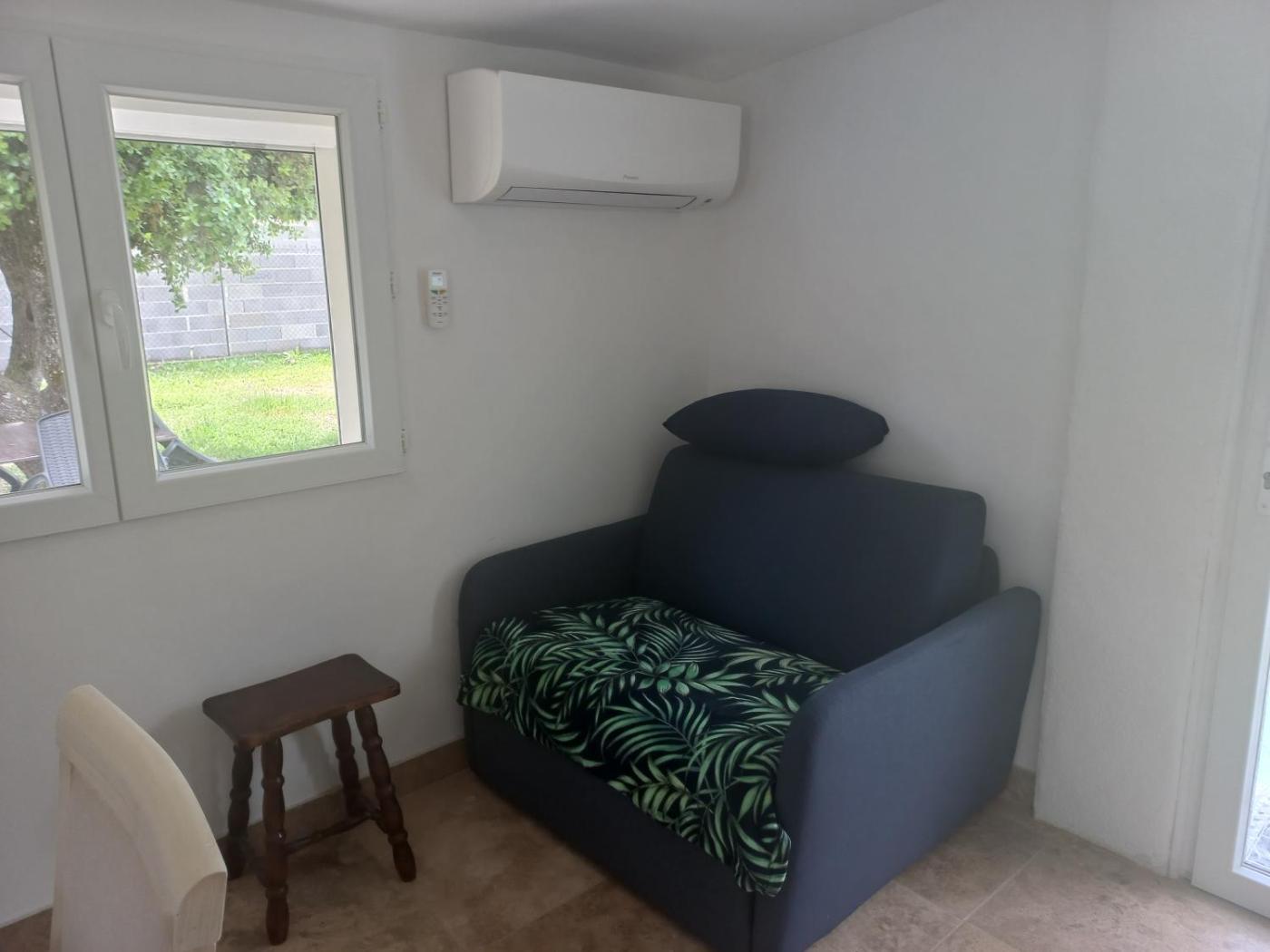 Cet hébergement à la campagne avec climatisation compte un coin salon, une kitchenette avec un réfrigérateur et une télévision à écran plat. Des serviettes et du linge de lit sont à disposition.