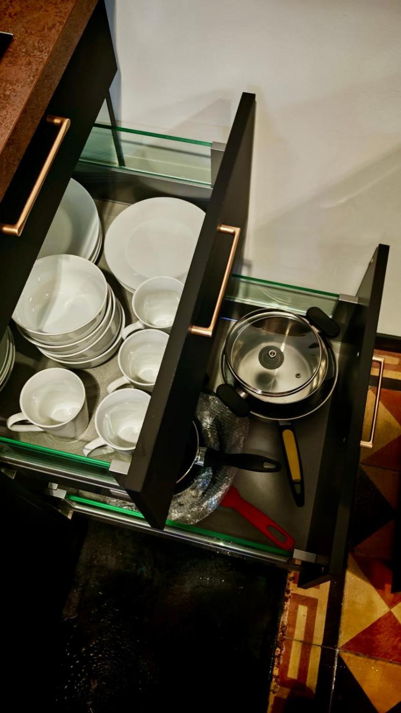 La cuisine est pourvue d’un réfrigérateur, d’un four et d’un micro-ondes. Elle est également dotée d’une machine à café et d’une bouilloire.