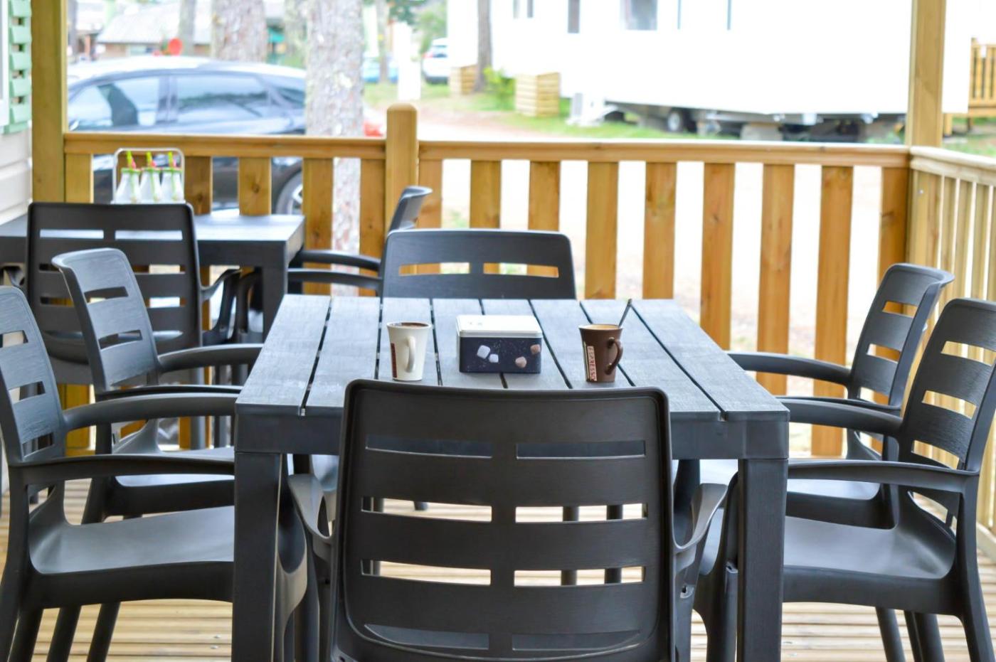 Mobile Home. This air-conditioned mobile home is comprised of 1 living room, 3 separate bedrooms and 2 bathrooms with a shower. A seating area with a flat-screen TV, a dining area and an outdoor dining area are featured in this mobile home. The unit offers 6 beds.