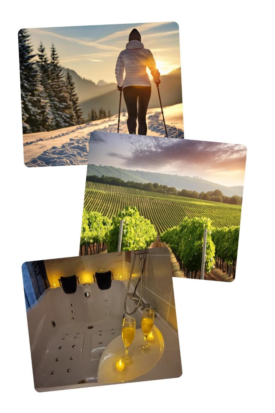 Chambre Double avec Baignoire Spa. The hot tub and spa bath are the special features of this double room. The spacious double room features a private entrance, a tea and coffee maker, a terrace with mountain views as well as a private bathroom boasting a shower. The unit has 1 bed.