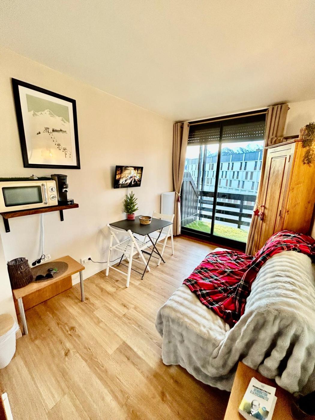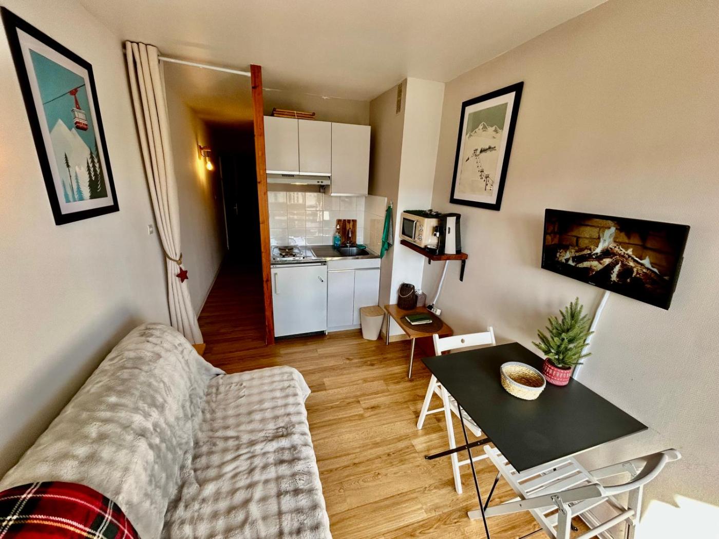 Appartement 1 Chambre. This apartment includes 1 living room, 1 separate bedroom and 1 bathroom with a bath and a hairdryer. Guests can make meals in the kitchenette that is fitted with a stovetop, a refrigerator, kitchenware and a microwave. Boasting a balcony with mountain views, this apartment also offers a coffee machine and a flat-screen TV. The unit has 3 beds.
