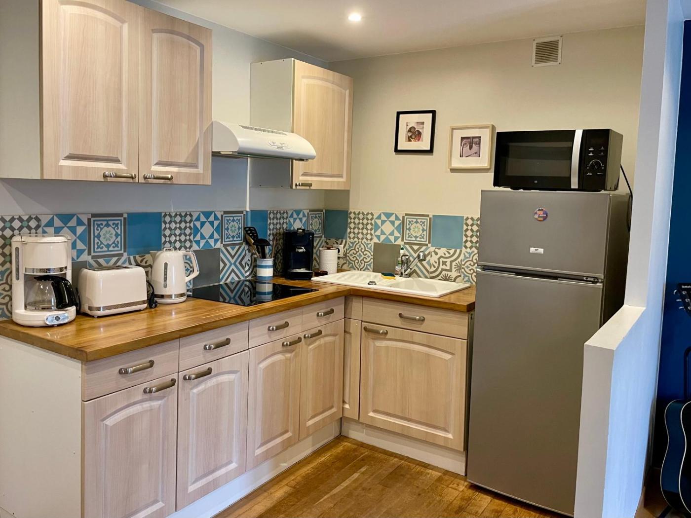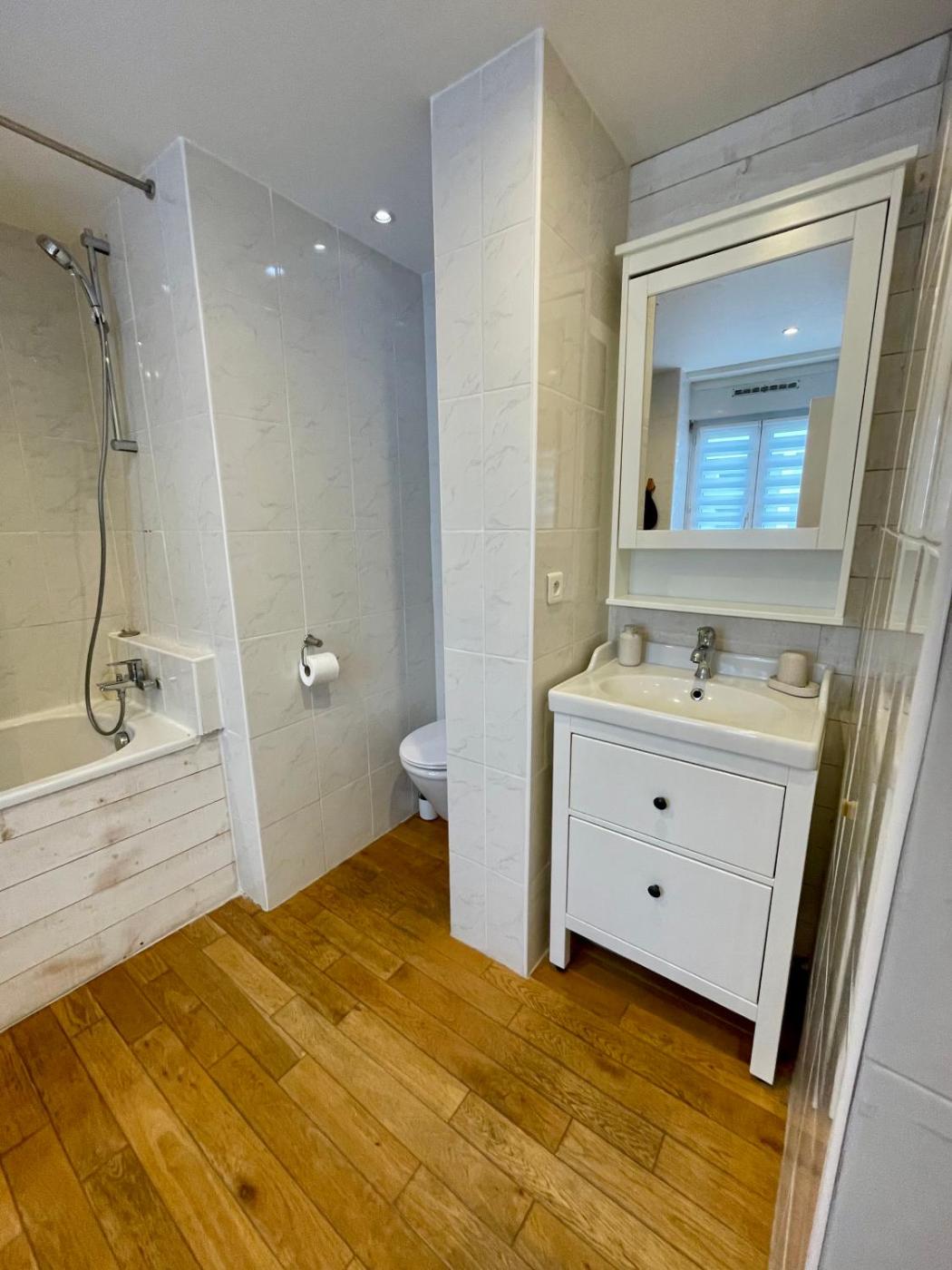 Appartement 1 Chambre. This apartment consists of 1 living room, 1 separate bedroom and 1 bathroom with a bath and a hairdryer. The well-fitted kitchen features a stovetop, a refrigerator, kitchenware and a microwave. The apartment has parquet floors, a seating area with a flat-screen TV, a tea and coffee maker, a dining area, as well as a wardrobe. The unit offers 2 beds.