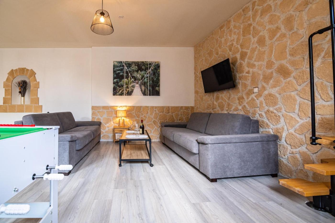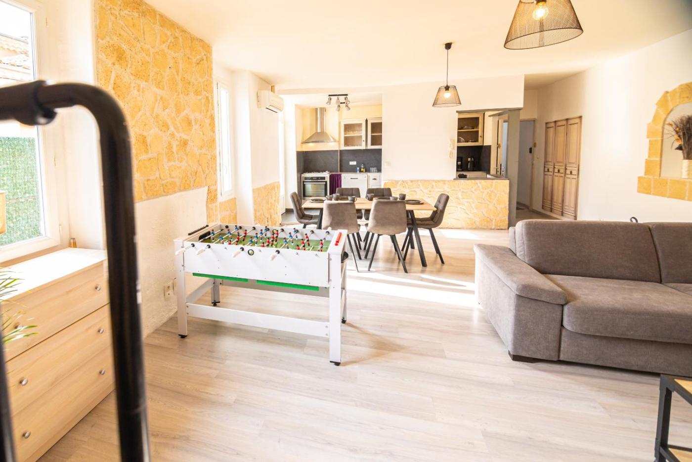 Chambre Quadruple Confort. The quadruple room offers a dining area, a wardrobe, as well as a private bathroom boasting a shower and a hairdryer. In the well-fitted kitchen, guests will find a stovetop, a refrigerator, a dishwasher and kitchenware. This quadruple room is air-conditioned and has a seating area with a flat-screen TV, a washing machine, a private entrance, soundproof walls, as well as a tea and coffee maker. The unit has 2 beds. ;