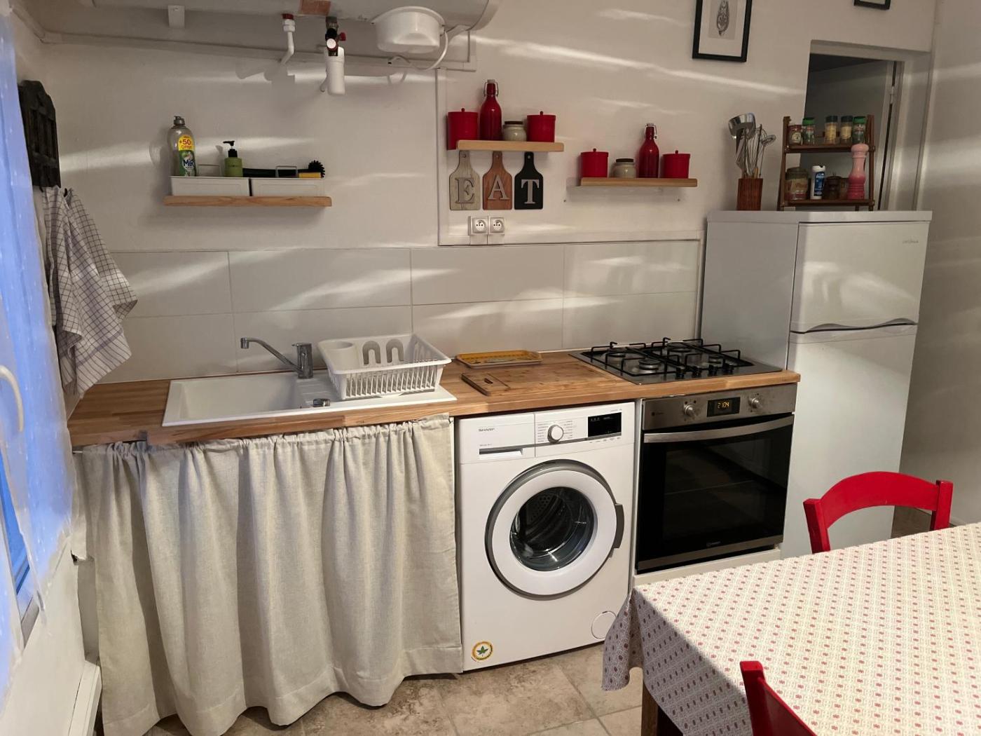 Maison 1 Chambre. The holiday homes kitchen, which features kitchenware, is available for cooking and storing food. The air-conditioned holiday home provides a flat-screen TV, a washing machine, a private entrance, soundproof walls as well as garden views. The unit offers 2 beds.
