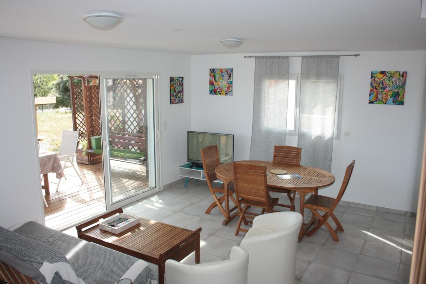 Maison 2 Chambres. Featuring a private entrance, this air-conditioned holiday home is comprised of 1 living room, 2 separate bedrooms and 1 bathroom with a walk-in shower and a hairdryer. Guests will find a stovetop, a refrigerator, a dishwasher and kitchenware in the fully equipped kitchen. The holiday home also has a barbecue. Boasting a terrace with garden views, this holiday home also offers a washing machine and a flat-screen TV. The unit offers 3 beds. ;