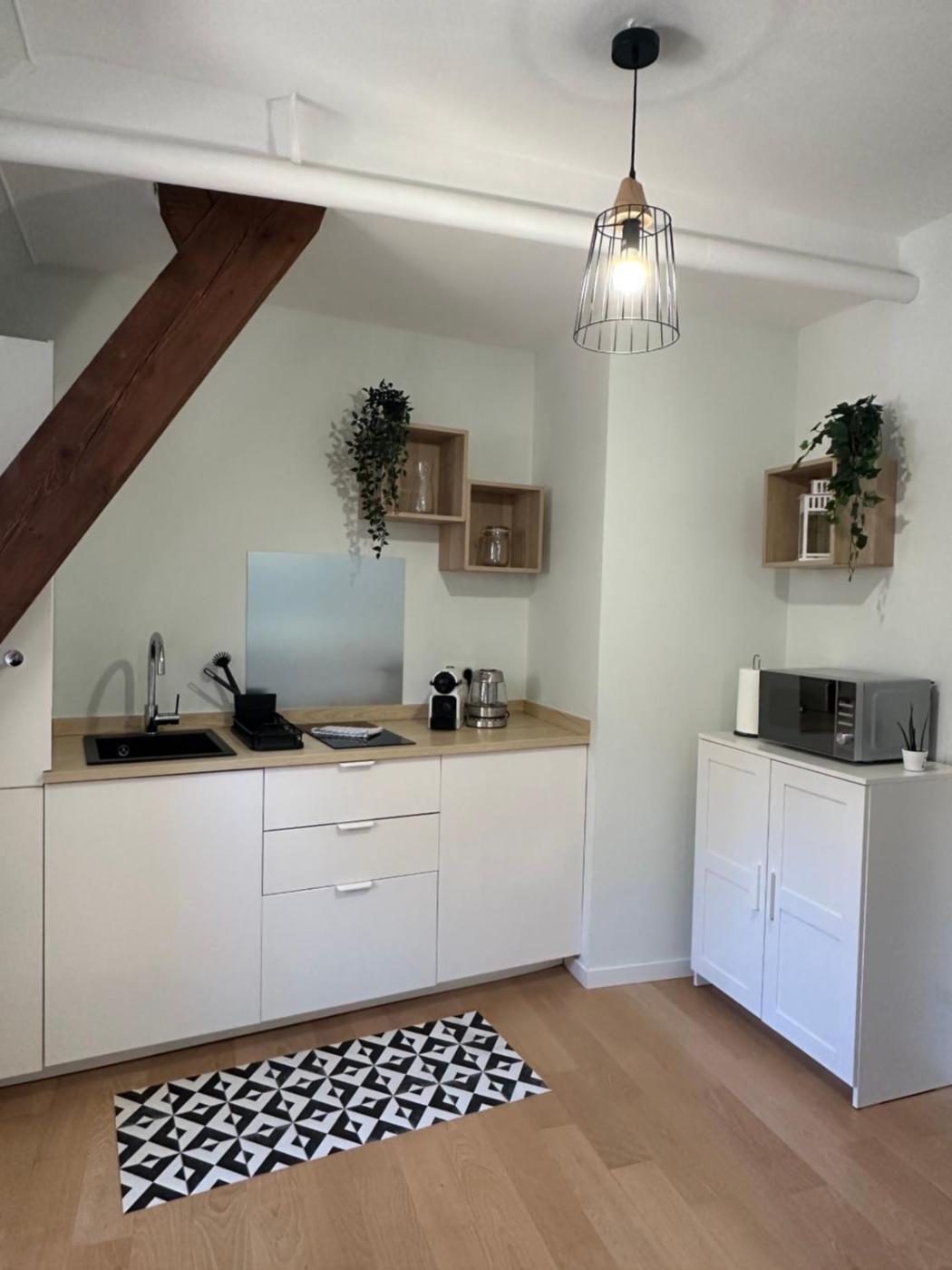 Appartement 1 Chambre. The well-equipped kitchen has a stovetop, a refrigerator, kitchenware and an oven. The air-conditioned apartment features a flat-screen TV with streaming services, a private entrance, a tea and coffee maker, a seating area as well as city views. The unit has 1 bed.